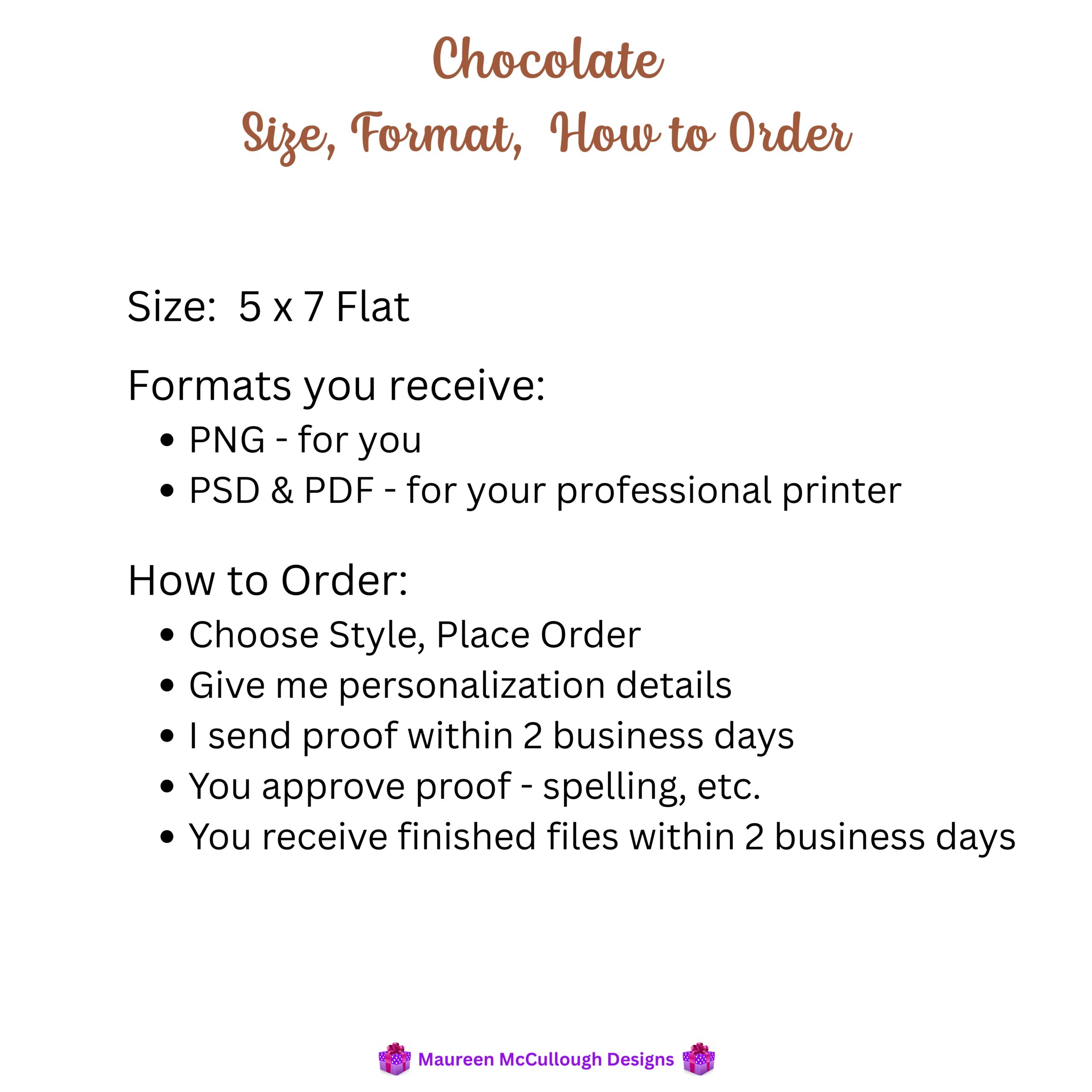 This wedding suite includes three coordinating, flat 5×7 designs: