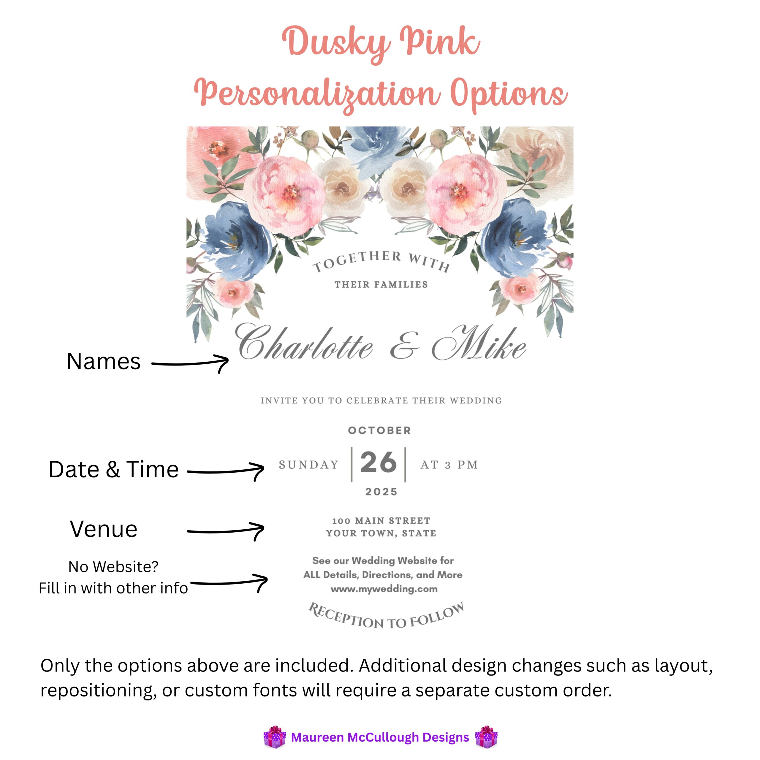• Optional wedding website URL or alternate wording